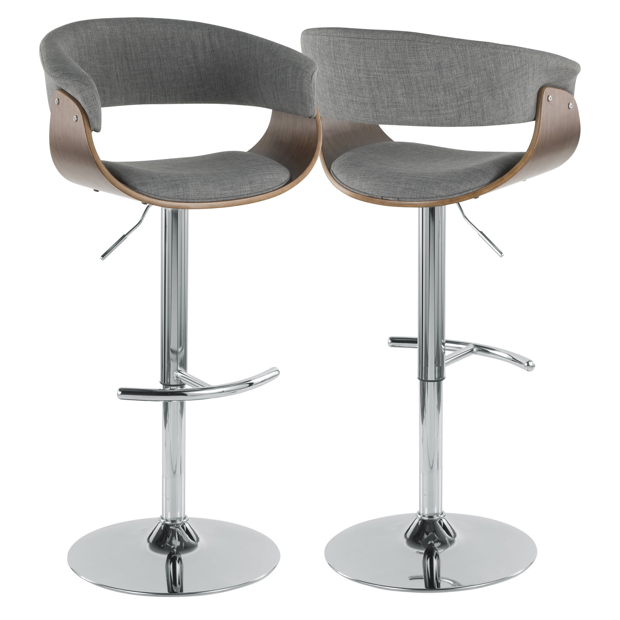 Vintage Mod Mid Century Modern Adjustable Barstool With Swivel In Walnut And Light Grey Fabric By Lumisource Walmart Com Walmart Com